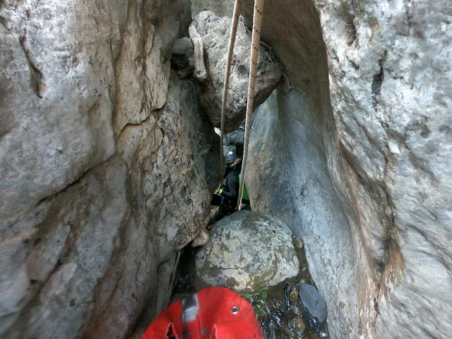 21-Destrepes; pasamos bajo bloques y restos de un puente de troncos;